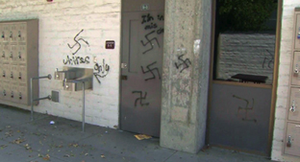 The use of the swastika and the words “let’s triple 6 million” recall the horrific genocide of 6 million Jews and 5 million others including children, homosexuals, gypsies, and others. The swastika remains one of the most powerful and enduring emblems of religious and ethnic hatred. It recalls the time of nationalist systematic murder, and of widespread international indifference.Few anti-Semitic acts more deeply strike pain into the heart of a Jew.